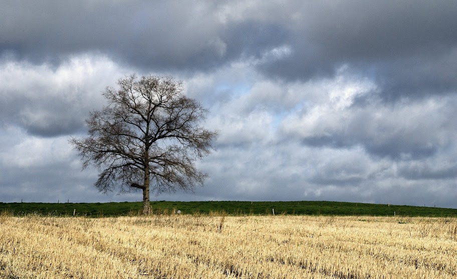 Encore des sols mitoyens et un arbre témoin ; et derrière au fond, on irait presque plonger dans ce ciel. Comme si le monde s'arrêtait après la bande verte.